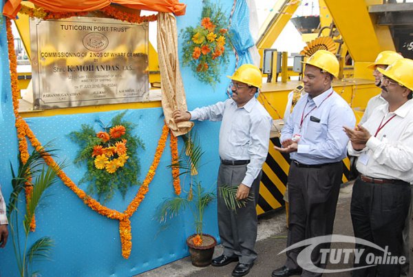 தூத்துக்குடி துறைமுகத்தில் ரூ.18 கோடி மதிப்பிலான புதிய வளர்ச்சித் திட்ட பணிகளை மத்திய கப்பல் துறை செயலாளர் மோகன்தாஸ் துவக்கி வைத்தார். துறைமுகத்தின் பாதுகாப்பை பலப்படுத்த 1 கோடியே 40 லட்சம் ரூபாய் செலவில் துறைமுகத்தின் முக்கிய பகுதிகளில் கேமரா மூலம் கண்காணிக்கும் கருவிகள் நிறுவப்பட்டுள்ள கட்டுப்பாட்டு அறையை அவர் திறந்து வைத்தார். இதுபோல் ரூ.12.19 கோடியில் நிறுவப்பட்ட 10 டன் மற்றும் 6 டன் கொள்ளளவு கொண்ட பளு தூக்கியையும் இயக்கி வைத்தார். இதன்மூலம் உற்பத்தி திறன் வருடத்திற்கு 1.9 மில்லியன் டன் உயரும். (புகைப்படங்கள்:இருதயராஜ்)