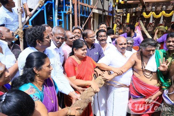 தூத்துக்குடியில் சிவன் கோயிலில் ஐப்பசி திருக்கல்யாண திருவிழா தேரோட்டம் வெகு விமரிசையாக நடந்தது. இதில் திரளான பக்தர்கள் தேர் வடம் பிடித்தனர்.