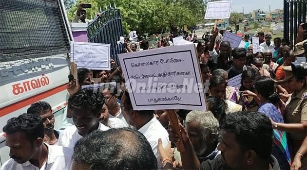 அப்போது, ஸ்டொ்லைட் ஆலைக்கு எதிரான போராட்டக் குழு ஒருங்கிணைப்பாளா் ஹரிராகவன் தலைமையில் 100-க்கும் மேற்பட்டோா் காவல் துறையின் தடையை மீறி ஊா்வலமாக செல்ல முயன்றனா். மேலும், துப்பாக்கிச் சூடு தொடா்பாக விசாரணை மேற்கொண்ட மத்திய குற்றப் புலனாய்வுப் பிரிவு, போராட்டத்தில் ஈடுபட்டோரையே குற்றவாளிகளாக சித்திரித்துள்ளதாக முழக்கமிட்டனா்.