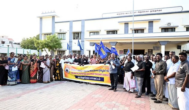 சங்கத்தின் மாவட்ட அமைப்பாளர் எம். ஜேசுமணி தலைமை வகித்தார். இணை அமைப்பாளர் பொன்ராஜ் முன்னிலை வகித்தார். தமிழ்நாடு அரசு அனைத்துத் துறை ஓய்வூதியர் சங்க மாவட்டச் செயலர் இல. ராமமூர்த்தி ஆர்ப்பாட்டத்தைத் துவக்கி வைத்துப் பேசினார். இதில், பல்வேறு சங்கங்களைச் சேர்ந்த நிர்வாகிகள் கருப்பு உடை அணிந்து கோரிக்கைகளை வலியுறுத்தி முழக்கமிட்டனர்.