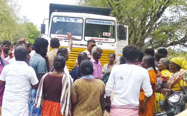 பைக் மீது லாரி மோதி கைக்குழந்தை உள்பட 3 பேர் காயம் : கிராம மக்கள் சாலைமறியல்