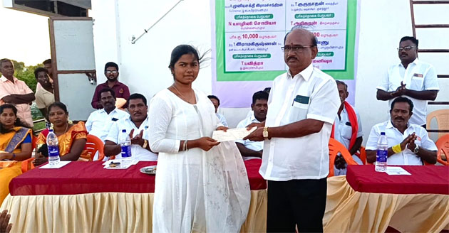 தூத்துக்குடி மாவட்டம், விளாத்திகுளம் பகுதியில் கடந்த 2024-2025 கல்வியாண்டில் 10-ம் வகுப்பு பொதுத்தேர்வில் முதல் மூன்று மதிப்பெண்கள் பெற்ற மோனிகா, யாழினி சோபியா, பவித்ரா, 12-ஆம் வகுப்பில் முதல் மூன்று இடங்களைப் பிடித்த பிரதீபா, அரிகரன், முத்துமனிஷா ஆகியோருக்கு தேவேந்திர குல வேளாளர் நல சங்கம் சார்பாக பரிசுத்தொகையாக ரூ.15,000, ரூ.12,000 மற்றும் ரூ.10,000 வழங்கப்பட்டது.