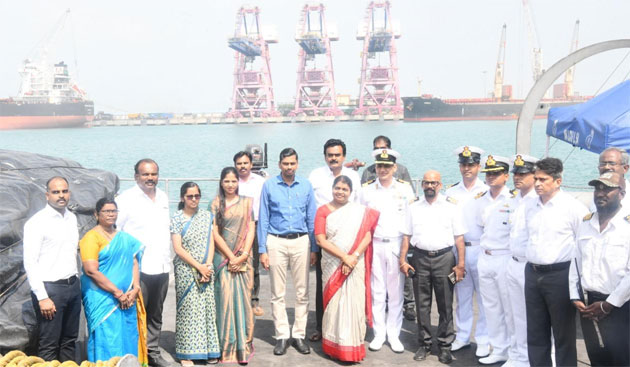 தூத்துக்குடி துறைமுகத்திலிருந்து சமூக நலன் மற்றும் மகளிர் உரிமைத் துறை அமைச்சர் கீதா ஜீவன், மாநகராட்சி மேயர் பெ.ஜெகன், தூத்துக்குடி மாவட்ட ஆட்சித் தலைவர் க.இளம்பகவத், மாநகராட்சி ஆணையர் பிரியங்கா, கூடுதல் ஆட்சியர் (வளர்ச்சி) ரா.ஐஸ்வர்யா, கமோடர் அனில்குமார், கடற்படை ஸ்டேசன் கமாண்டர் மற்றும் அரசு உயர் அலுவலர்கள் கலந்து கொண்டனர்.