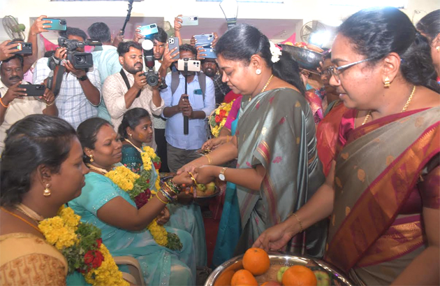 மேலும், நிகழ்ச்சியில் கலந்து கொண்ட 250 கர்ப்பிணி பெண்களுக்கும் சீர்வரிசையாக தட்டு, மஞ்சள், குங்குமம், தேங்காய், வளையல், பூ, புடவை, 1000 நாட்கள் குறித்த விழிப்புணர்வு துண்டு பிரசுரம் ஆகிய வளைகாப்பு சீர்வரிசைப் பொருட்களை சமூக நலன் மற்றும் மகளிர் உரிமைத்துறை அமைச்சர் பி.கீதா ஜீவன் அவர்கள் வழங்கினார். அனைத்து கர்ப்பிணிகளுக்கும் ஐவகை சாதம் பரிமாறப்பட்டது.