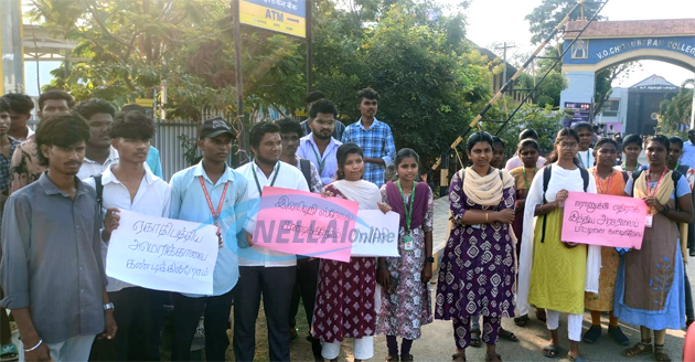 ஈரான் மீதான தாக்குதலைக் கண்டித்து வ.உ.சி கல்லூரி மாணவர்கள் ஆர்ப்பாட்டம்