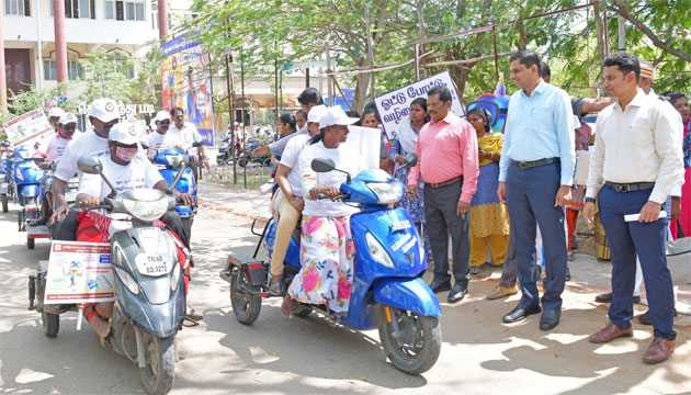 சட்டமன்றப் பொதுத்தேர்தலில் 100 சதவீத வாக்குப்பதிவை உறுதி செய்யும் வகையில், தூத்துக்குடியில் மாற்றுத்திறனாளிகள் பங்கேற்ற மோட்டார் சைக்கிள் விழிப்புணர்வு பேரணி நடைபெற்றது.