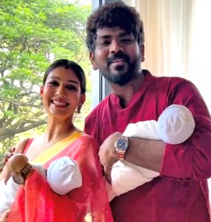 விக்னேஷ் சிவன் - நயன்தாராவுக்கு சமீபத்தில் இரட்டைக் குழந்தைகள் பிறந்தன. குழந்தைகள் பிறந்த விவகாரம் பெரும் சர்ச்சைக்குள்ளான நிலையில், இதுபற்றி விசாரிக்க சுகாதாரத் துறை சார்பாக விசாரணை நடைபெற்று வருகிறது. இந்நிலையில், நேற்று நாடு முழுவதும் தீபாவளிப் பண்டிகை கோலாகலமாகக் கொண்டாடப்பட்டது. திரைப் பிரபலங்கள், விளையாட்டு நட்சத்திரங்கள், அரசியல் தலைவர்கள் என அனைவரும் தங்களது வாழ்த்துகளைத் தெரிவித்தனர். இந்நிலையில், விக்னேஷ் சிவன் மற்றும் நயன்தாரா தங்களது இரட்டைக் குழந்தைகளுடன் அனைவருக்கும் தீபாவளி வாழ்த்து தெரிவித்துள்ளனர். இந்த விடியோவை விக்னேஷ் சிவன் தனது இன்ஸ்டாகிராம் பக்கத்தில் பதிவிட்டுள்ளார். இந்த வீடியோ ட்விட்டர் உள்ளிட்ட சமூக ஊடகங்களில் வைரலானது.