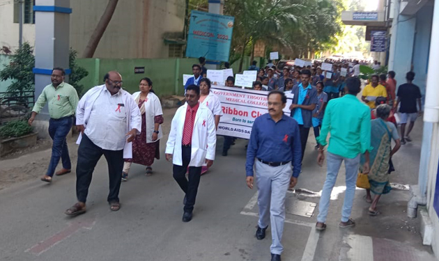 தூத்துக்குடியில் உலக எய்ட்ஸ் தினத்தை முன்னிட்டு அரசு மருத்துவக் கல்லூரி, ரெட் ரிப்பன் கிளப் மற்றும் ஏஆர்டி மையம் சார்பில் விழிப்புணர்வு பேரணி நடைபெற்றது.