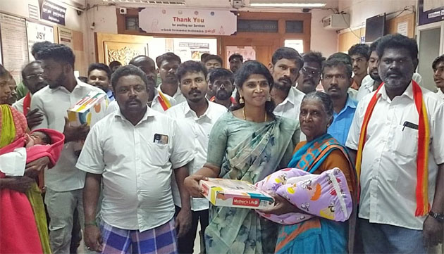 2025 ஆம் ஆண்டு புத்தாண்டை முன்னிட்டு தமிழக வெற்றி கழகம் சார்பில் தூத்துக்குடி அரசு மருத்துவமனையில் பிறந்த குழந்தைகள் அனைவருக்கும் புத்தாடை, பவுடர், சோப்பு, என்னை அடங்கிய பரிசு பெட்டகத்தை தூத்துக்குடி மாவட்ட பொறுப்பாளர் அஜிதா ஆக்னல் வழங்கினார்.