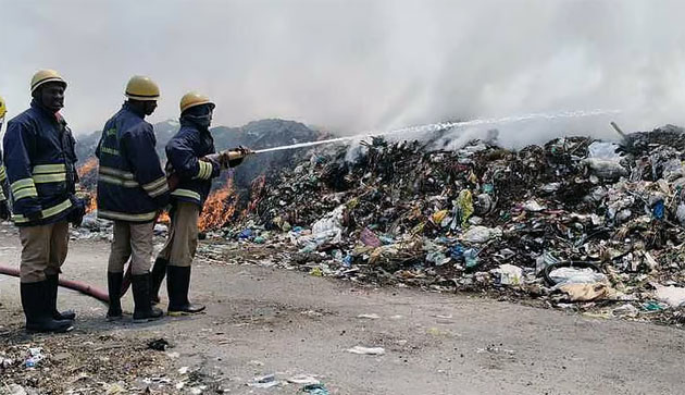 இதுகுறித்த தகவலின்பேரில் தீயணைப்புத் துறை அலுவலா் ராஜேந்திரன் தலைமையிலான வீரா்கள் 2 தீயணைப்பு வாகனங்களில் அங்கு சென்று சுமாா் 5 மணி நேரம் போராடி தீயை கட்டுக்குள் கொண்டு வந்தனா். இச்சம்பவத்தால் அப்பகுதி முழுவதும் புகை மூட்டமாக காணப்பட்டது. வாகனங்களில் சென்றோா் மிகவும் சிரமம் அடைந்தனர். சுகாதார அலுவலா் இளங்கோ தலைமையில் ஆய்வாளா்கள் ஆரியங்காவு, சுதாகா் ஆகியோா் நேரில் சென்று பாா்வையிட்டனர்.