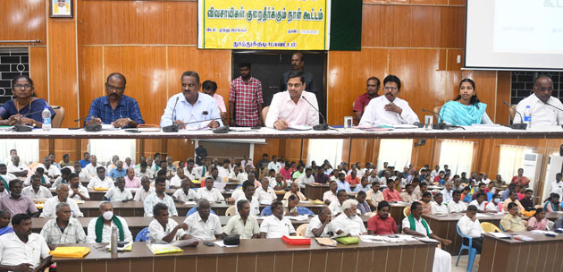 தூத்துக்குடி மாவட்ட ஆட்சியர் அலுவலகக் கூட்டரங்கில் இன்று (17.04.2025) விவசாயிகள் குறைதீர்க்கும் நாள் கூட்டம் மாவட்ட ஆட்சியர் க.இளம்பகவத், தலைமையில் நடைபெற்றது. கூட்டத்தில் ஆட்சியர் கூறியதாவது "தூத்துக்குடி மாவட்டத்தில் நடப்பு வருடத்தில் ஜனவரி 1-ம் தேதி முதல் இதுநாள் வரை 124.31 மி.மீ மழை அளவு கிடைக்கப் பெற்றுள்ளது. பாபநாசம் நீர்த்தேக்கத்திற்கு நீர்வரத்து 142.396 கனஅடியாகஉள்ளது. நீர்தேக்கத்திலிருந்து வெளியேறும் அளவு 300 கன அடியாக உள்ளது.