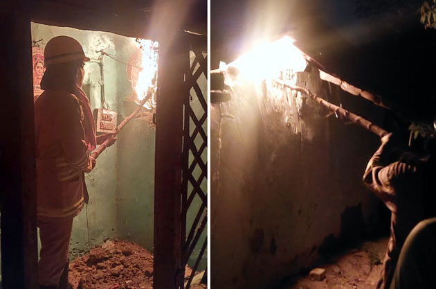 தூத்துக்குடி அருகே வீட்டில் கூடு கட்டியிருந்த விஷ கடந்தை வண்டுகளை தீயணைப்பு வீரர்கள் தீவைத்து அழித்தனர்.