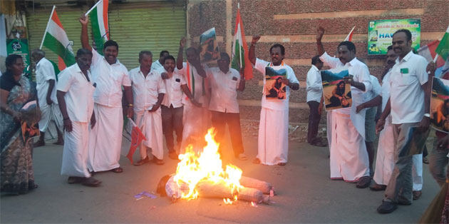 காஷ்மீர் தாக்குதல் நடத்திய தீவிரவாதிகள் உருவப் பொம்மை எரிப்பு: காங்கிரஸ் கட்சியினர் ஆவேசம்