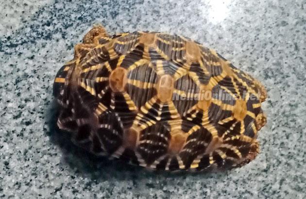 சாலையோரத்தில் ஊர்ந்து சென்ற நட்சத்திர ஆமை மீட்பு : வனத்துறையிடம் ஒப்படைப்பு