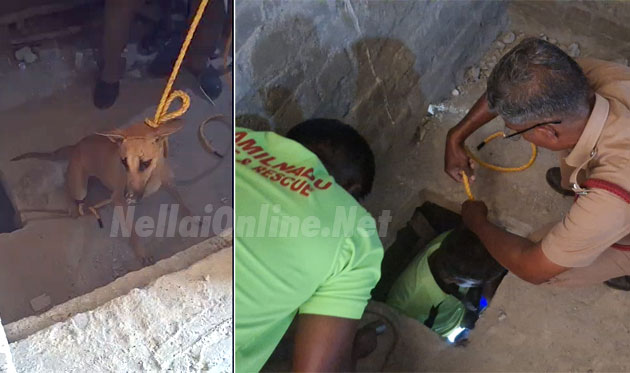 அங்கு மூடி போடப்படாத செப்டிங் டேங்கில் நாய் மற்றும் குட்டிகளின் சத்தம் கேட்டதை கண்டு, மிகவும் குறுகலான ஓட்டைப் பகுதியில் தீயணைப்பு வீரர் சக்திவேல் உள்ளே இறங்கி கயிறுகள் மூலம் முடிச்சுகள் போட்டு வெகு நேரமாக போராடி நாய் மற்றும் 4 குட்டிகளையும் மீட்டு மேலே கொண்டு வந்தார். பின்னர் தீயணைப்பு வீரர்கள் நாயையும் அதன் 4 குட்டிகளையும் பாதுகாப்பான இடத்தில் கொண்டு வைத்தனர். மேலும், செப்டிங் டேங்கில் மூடி போடுமாறும் வீட்டு உரிமையாளருக்கு அறிவுரை வழங்கினர்.
