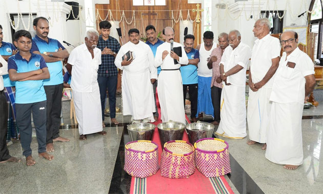 தூத்துக்குடி மாவட்டம், நாசரேத் அருகே உள்ள மூக்குப்பீறி சேகரம் வெள்ளரிக்காயூரணி சகல பரிசுத்தவான்களின் ஆலய 76வது பிரதிஷ்டை பண்டிகையை முன்னிட்டு அசன விருந்து நிகழ்ச்சி நடந்தது. சேகர தலைவர் ஞானசிங் எட்வின் தலைமை வகித்து ஜெபித்து அசன விருந்து நிகழ்ச்சியை தொடங்கி வைத்தார்.
