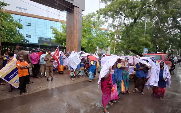 தூத்துக்குடியில் கொட்டும் மழையிலும் தூய்மை பணியாளர்கள் போராட்டம்: மேயர் பேச்சுவார்த்தை!
