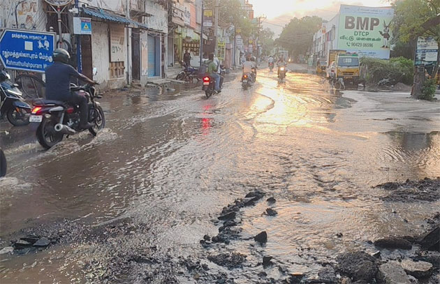தூத்துக்குடியில் பிரதான சாலையில் குடிநீர் குழாய் உடைந்து தண்ணீர் வீணாக வெளியறுவதால் சாலையில் ஆறுபோல தண்ணீர் பெருக்கெடுத்து ஓடியது.
