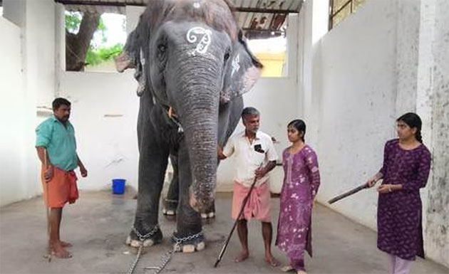 திருச்செந்தூர் கோவில் யானையிடம் ஆசிபெற்ற பாகனின் மகள்கள்!