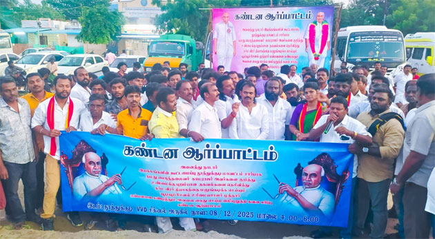 பெருந்தலைவர் காமராஜரை இழிவுபடுத்தி பேசிய யூடியூபர் முக்தாரை கண்டித்து தூத்துக்குடியில் விவிடி சிக்னல் அருகே அனைத்து நாடார் இயக்கங்களின் கூட்டமைப்பு ஆர்ப்பாட்டம் சார்பில் கண்டன ஆர்ப்பாட்டம் நடைபெற்றது. ஆர்ப்பாட்டத்திற்கு தமிழ்நாடு நாடார் பேரவை வழக்கறிஞர் பிரிவு மாநில தலைவர் எஸ்.ஜெயச்சந்திரன், பெருந்தலைவர் மக்கள் நல சங்கம் அமைப்பு நிறுவனத் தலைவர் எஸ்.பி. மாரியப்பன் ஆகியோர் தலைமை தாங்கினார்.