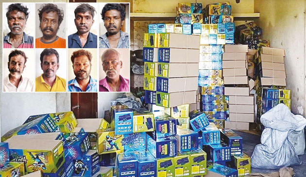 வீட்டில் தயாரிக்கப்பட்ட ரூ.10 லட்சம் பட்டாசுகள் பறிமுதல் : 8 பேர் கைது