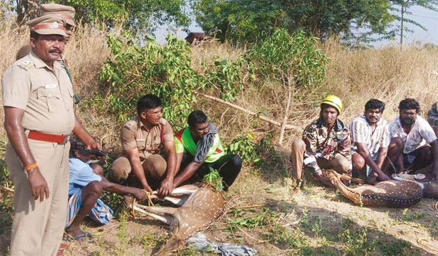 தூத்துக்குடி மாவட்டம் ஓட்டப்பிடாரம் அருகேயுள்ள கோடங்கால் கிராமத்தைச் சேர்ந்தவர் கெங்கராஜ். இவருக்குச் சொந்தமான தோட்டத்தில் சுமார் 30 அடி ஆழமுள்ள கிணறு ஒன்று உள்ளது. நேற்று காலை, அப்பகுதியில் இரை தேடி வந்த சுமார் ஒரு வயது மதிக்கத்தக்க மூன்று புள்ளிமான்கள், எதிர்பாராதவிதமாக ஒன்றன்பின் ஒன்றாக அந்த ஆழமான கிணற்றுக்குள் தவறி விழுந்தன.