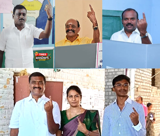 தமிழக சட்டமன்றத் தேர்தலை முன்னிட்டு, கோவில்பட்டி மற்றும் அதன் சுற்றுவட்டாரத் தொகுதி வேட்பாளர்கள், முக்கியப் பிரமுகர்கள் இன்று காலை தங்களது வாக்கினைப் பதிவு செய்தனர்.