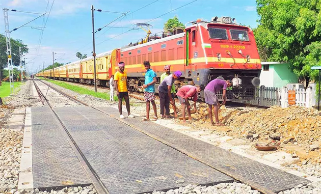 ரயில்வே கேட் பகுதிகளில் உள்ள தண்டவாள பகுதிகளில் சிமெண்ட் கற்கள் அமைக்கப்பட்டு வந்தது. தற்போது இரட்டை ரயில் பாதை அமைக்கப்பட உள்ள இடத்தில் நவீன மயமாக்கப்படும் வகையில் ரப்பர் சீட்டுகளை அமைக்க நடவடிக்கை எடுக்கப்பட்டது. இதையடுத்து சென்னையில் இருந்து ரப்பரைஸ்ட் சீட்டுகள் கொண்டு வரப்பட்டன. தற்போது தண்டவாளங்கள் அமைக்கப்படும் பகுதியில் சிமெண்ட் கற்களுக்கு பதிலாக ரப்பரைஸ்ட் சீட்டுகள் அமைக்கப்பட்டு வருகிறது. ரயில்வே கேட் பகுதிகளில் வாகனங்கள் இலகுவாக செல்ல வசதியாக ரப்பரைஸ்ட் சீட்டுகள் அமைக்கப்படுகின்றன.