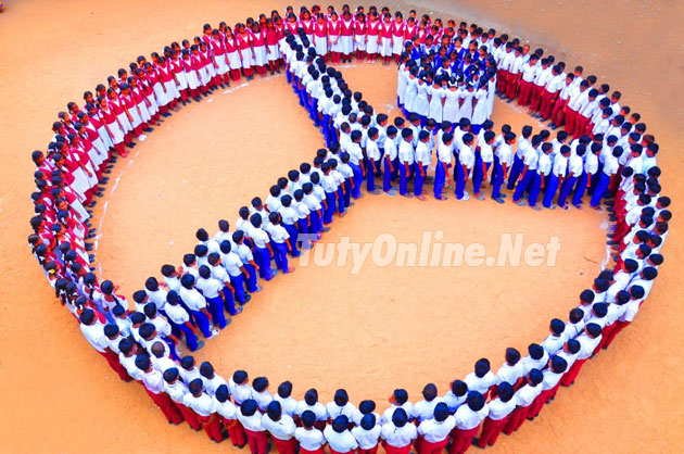 உலக எழுத்தறிவு தின இலச்சினை வடிவில் அணிவகுத்து நின்ற பள்ளி மாணவர்கள்!!