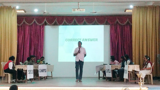 தூத்துக்குடி காமராஜ் கல்லூரியின் இயற்பியல் உதவிப் பேராசிரியர் பாலாஜி வினாடி வினா போட்டிகளை நடத்தினார். தலா இரண்டு பங்கேற்பாளர்கள் கொண்ட 16 அணிகளுக்கும் முதற்கட்ட எழுத்துத் தேர்வோடு தொடங்கியது, அதில் இருந்து முதல் ஐந்து அணிகள் மேடையில் நடைபெறும் வினாடி வினா போட்டிக்கு தகுதி பெற்றன.