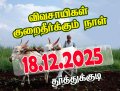 2025-ம் ஆண்டு டிசம்பர் மாதத்திற்கான விவசாயிகள் குறை தீர்க்கும் நாள் கூட்டம் வருகிற 18ஆம் தேதி விவசாயிகள் குறை தீர்க்கும் நாள் கூட்டம் நடைபெற...
