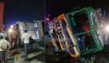 டோல்கேட்டில் லாரி கவிழ்ந்து விபத்து : கிளீனர் படுகாயம் - தூத்துக்குடியில் பரபரப்பு!
