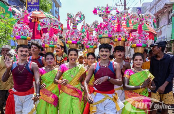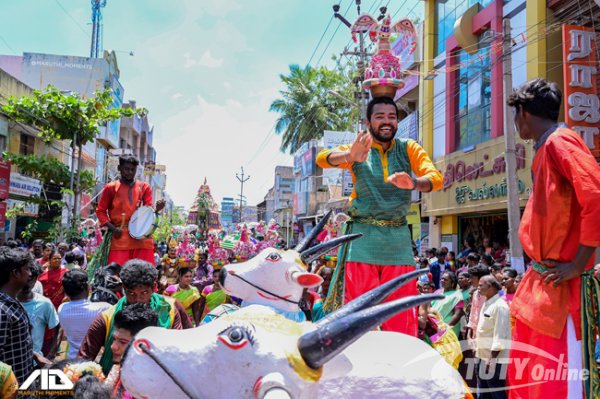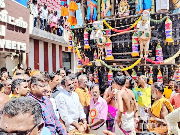 தூத்துக்குடி சிவன் கோவிலில் சித்திரை திருவிழா தேரோட்டம் 2ஆண்டுகளுக்கு பின்னர் இன்று பக்தர்கள் பங்கேற்புடன் நடந்தது. ஒயிலாட்டம், மயிலாட்டம், கரகாட்டம், பொய்க்கால் குதிரை, ராஜமேளம், செண்டை மேளம், நையாண்டி மேளம், உறுமிமேளம், தப்பாட்டம் உள்ளிட்ட நாட்டுப்புற கலைஞர்கள் கலை நிகழ்ச்சிகளுடன் கோலாகலமாக நடைபெற்றது. தொண்டர்களின் சிவகைலாய சிவபூதகண வாத்தியங்களுடன், மகளிர் கோலாட்டம் மற்றும் தேவார இன்னிசையுடன் வேதபாராயணம் பாட, சிலம்பாட்டம் மாணவ, மாணவியரின் வீர விளையாட்டுகளுடன் வெகு விமரிசையாக தேரோட்டம் நடந்தது.