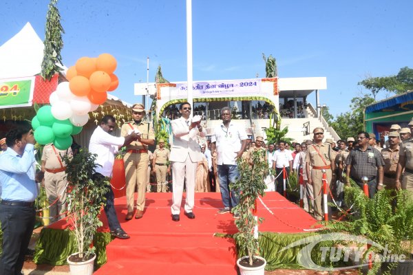 தூத்துக்குடி மாவட்ட நிர்வாகம் சார்பில் 78வது சுதந்திர தின விழா மாவட்ட விளையாட்டு அரங்கில் கொண்டாடப்பட்டது. விழாவை முன்னிட்டு மாவட்ட ஆட்சியர் கோ.லட்சுமிபதி, மாவட்ட எஸ்பி ஆல்பர்ட் ஜான் முன்னிலையில் தேசிய கொடியை ஏற்றி வைத்து புறாக்கள், வண்ண பலூன்களை பறக்க விட்டார். பின்னர் போலீசாரின் அணிவகுப்பை திறந்த ஜீப்பில் சென்று பார்வையிட்டு மரியாதையை ஏற்றுக் கொண்டார்.