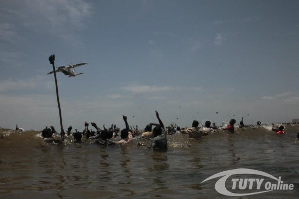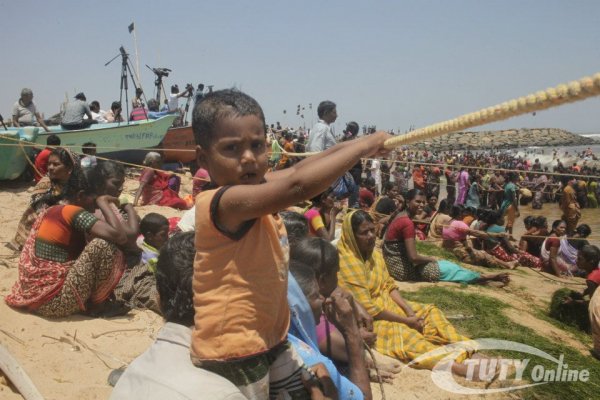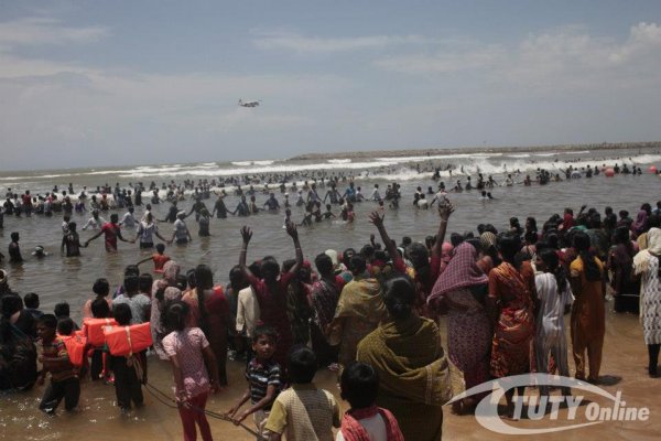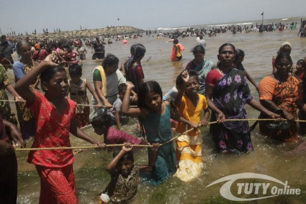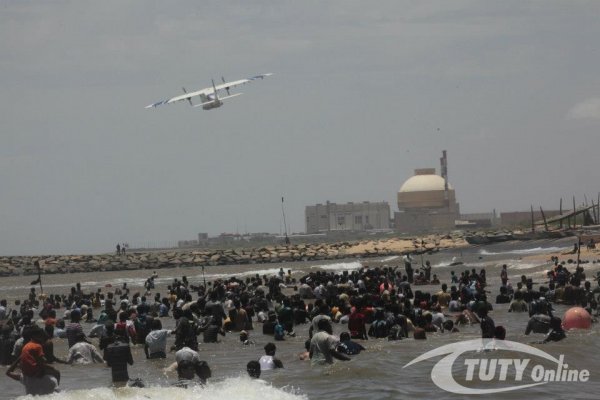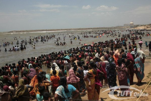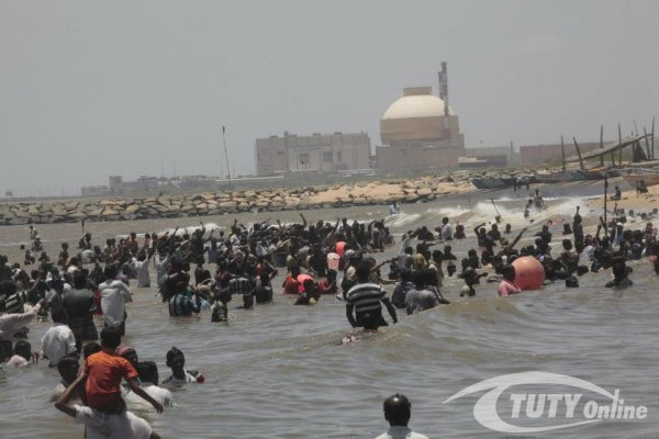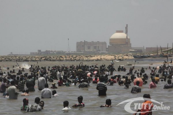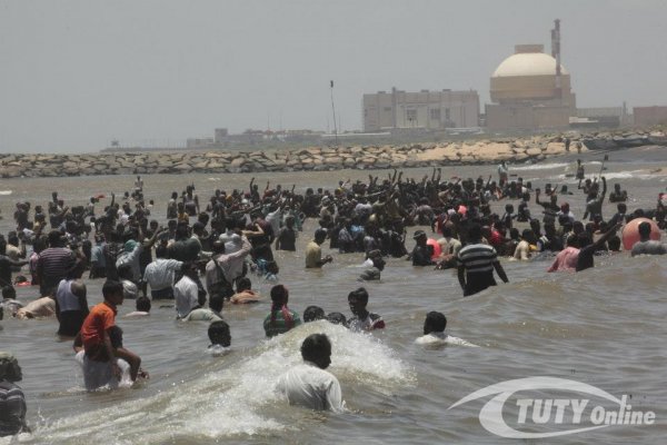 கூடங்குளம் அணு உலையில் எரிபொருள் நிரப்பும் பணியை நிறுத்த வலியுறுத்தியும், போராட்டக்காரர்கள் மீதான தடியடி மற்றும் துப்பாக்கிச் சூடு சம்பவத்துக்கு கண்டனம் தெரிவித்தும் கூடங்குளம் போராட்டக் குழு மற்றும் ஏராளமான கிராம மக்கள் இன்று கடலில் இறங்கி போராடி வருகின்றனர். சுமார் 3,000த்துக்கும் மேற்பட்டவர்கள் கடலில் இறங்கி போராட்டத்தில் ஈடுபட்டு வருகின்றனர். பெண்களும், குழந்தைகளும் கூட இந்த போராட்டத்தில் ஈடுபட்டு வருகின்றன. அப்பகுதியில் ஏராளமான போலிஸார் குவிக்கப்பட்டுள்ளனர்.