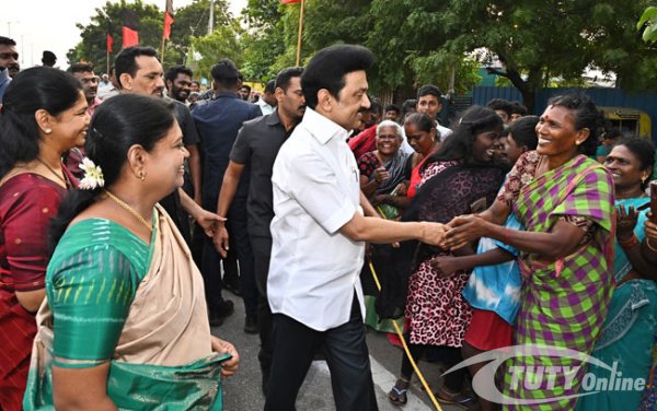 தூத்துக்குடியில மினி டைடல் பார்க் உட்பட பல்வேறு திட்டப் பணிகளை துவக்கி வைக்க தூத்துக்குடி வருகை தந்தை முதல்வருக்கு பொதுமக்கள் உற்சாக வரவேற்பு அளித்தனர்.