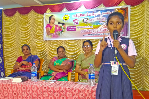 அதனை தொடர்ந்து பள்ளி மாணவர்களின் பல்சுவை நிகழ்ச்சி நடந்தது. பேச்சாளர் மலர்விழி சிறப்பு விருந்தினராக கலந்து கொண்டு, காலத்தை வென்ற கவிஞன் கண்ணதாசன் எனும் தலைப்பில் மகிழ்வுரையாற்றினார்.