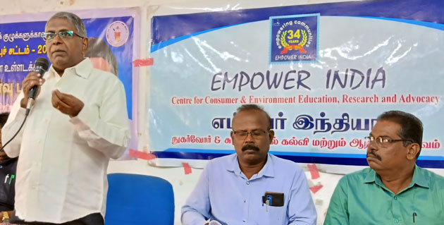 இந்நிகழ்ச்சிக்கு உணவுப் பொருள் வழங்கல் மற்றும் நுகர்வோர் பாதுகாப்புத்துறை அலுவலர் உஷா தலைமை தாங்கினார். எம்பவர் இந்தியா நுகர்வோர் கல்வி மற்றும் ஆராய்ச்சி நடுவத்தின் கௌரவ செயலாளர் மற்றும் தூத்துக்குடி மாவட்ட நுகர்வோர் குறைதீர் ஆணைய உறுப்பினர் ஆ.சங்கர் கலந்து கொண்டு பேசும் போது கூறியதாவது :