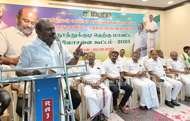 திருச்செந்தூரில் 42வது வணிக அதிகார பிரகடன மாநாடு குறித்து தெற்கு மாவட்ட வணிகர் சங்கங்களின் பேரமைப்பு ஆலோசனைக் கூட்டம் நடைபெற்றது.