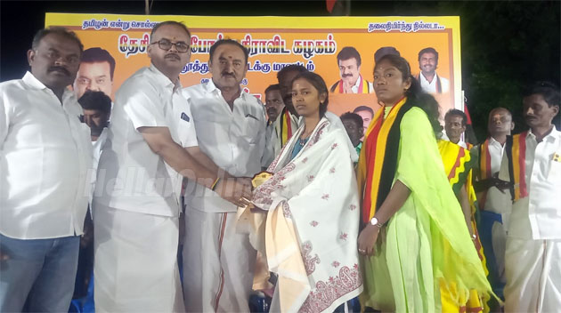 தேசிய முற்போக்கு திராவிட கழகத்தின் பொதுச் செயலாளர் பிரேமலதா விஜயகாந்த்-ன் வேண்டுகோளை ஏற்று தூத்துக்குடி வடக்கு மாவட்ட தேசிய முற்போக்கு திராவிட கழகம் சார்பில் இன்று எட்டையபுரம் அருகே உள்ள கீழ ஈரால் கிராமத்தில் தூத்துக்குடி வடக்கு மாவட்ட செயலாளர் சுரேஷ் தலைமையில், கொடி நாள் 25-ம் ஆண்டு வெள்ளி விழாவை முன்னிட்டு கழகத்தின் கொள்கைகள் மற்றும் கொடி விளக்க மாபெரும் பொதுக்கூட்டம் நடைபெற்றது.