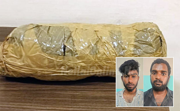 அப்போது அங்குள்ள ஆஞ்சநேயர் கோவில் அருகில் சந்தேகத்துக்கு இடமாக நின்று கொண்டிருந்த 2 பேர் போலீசாரை பார்த்ததும் தப்பி ஓடினர். தனிப்படை போலீசார் அந்த 2பேரையும் துரத்தி சென்று பிடித்து சோதனை நடத்தினர். அப்போது, அந்த 2 பேரிடமும் விற்பனைக்கு வைத்திருந்த 1 கிலோ 100 கிராம் கஞ்சா இருந்தது தெரியவந்தது. அவற்றை போலீசார் பறிமுதல் செய்தனர்.