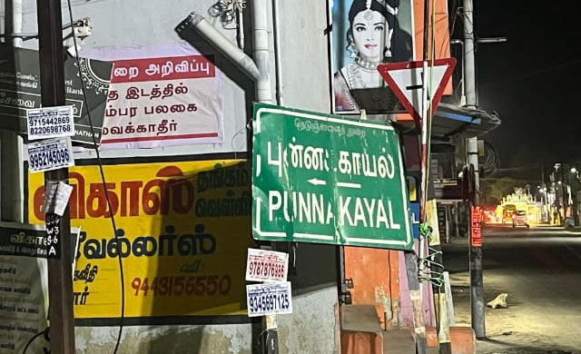 புன்னக்காயல் பெயர் பலகையை சீரமைக்க கோரிக்கை!