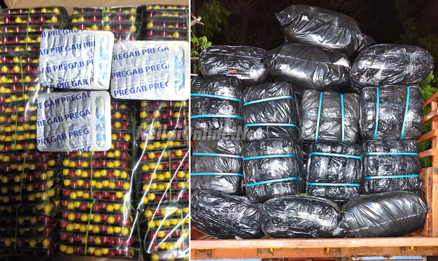 சந்தேகமடைந்த போலீசார், மினி லாரியை சோதனை செய்த போது, அதில் 9 பண்டல்களில் வலி நிவாரணி மாத்திரைகள், தலா 35 கிலோ எடை கொண்ட 72 பண்டல்களில் சுமாா் 2,500 கிலோ பீடி இலை பதுக்கி வைக்கப்பட்டிருந்தது தெரிய வந்தது. அதனை போலீசார் பறிமுதல் செய்து, சுங்கத்துறையினரிடம் ஒப்படைத்தனா்.