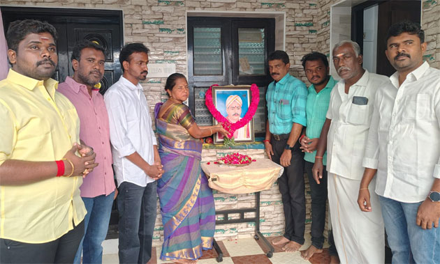 சுதந்திரப் போராட்ட வீரர் கப்பலோட்டிய தமிழர் வ.உ. சிதம்பரனார் 154வது பிறந்தநாள் விழா இன்று நாடு முழுவதும் வெகு விமர்சையாக கொண்டாடப்பட்டு வருகிறது. இதை முன்னிட்டு தூத்துக்குடி மாவட்டம் கோவில்பட்டியில் வ.உ.சியின் கொள்ளுப்பேத்தி செல்வி அவரது வீட்டில் வ.உ.சி யின் திருவுரு படத்திற்கு மலர் தூவி மரியாதை செய்தார்.இதில் திரைப்பட தணிக்கைக்குழு முன்னாள் உறுப்பினருமான வழக்கறிஞர் முருகானந்தம், மருத்துவர் அறுவை சிகிச்சை நிபுணர் கபிலாஸ் போஸ், மோனிஷா, மாரிச்செல்வம், வழக்கறிஞர்கள் நாகராஜ் பாண்டியன், சுரேஷ் மற்றும் ஜவகர், முத்துக்குமார் உள்ளிட்ட பலர் கலந்து கொண்டனர்