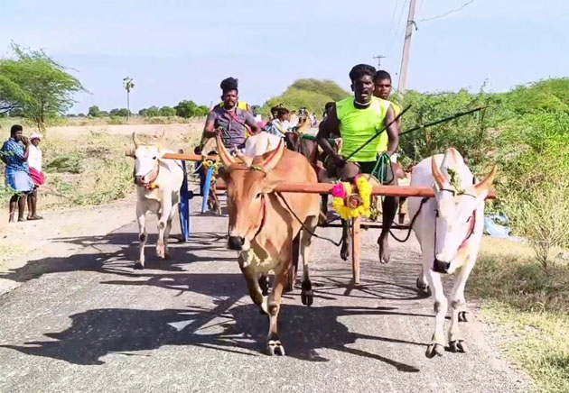 ஆவணி பொங்கல் திருவிழா மாட்டு வண்டி எல்கை பந்தயம்: சீறிப்பாய்ந்த காளைகள்!