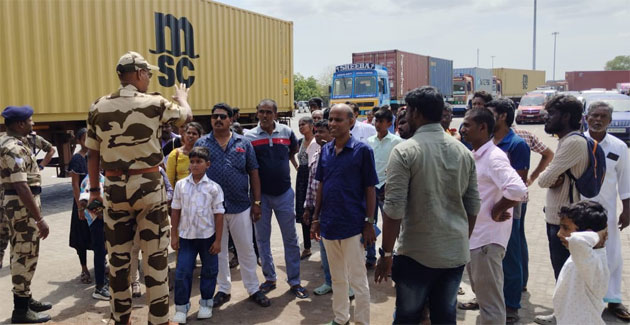தூத்துக்குடி துறைமுக வாயிலை முற்றுகையிட்ட மக்கள்