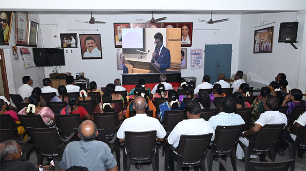 அந்நிகழ்வில் திமுக தலைவரும் தமிழ்நாடு முதலமைச்சருமான மு க ஸ்டாலின் நிகழ்த்திய உரையை தூத்துக்குடி வடக்கு மாவட்ட திமுக சார்பில், தூத்துக்குடி - எட்டயபுரம் சாலையில் உள்ள கலைஞர் அரங்கில் LED திரை அமைத்து ஒளிபரப்பு செய்ய மாவட்டக் கழக செயலாளர் கீதாஜீவன் ஏற்பாடு செய்திருந்தார். இன்று (05.09.2025) காலை 10:30 மணி அளவில் திமுக தலைவர் மு.க. ஸ்டாலின் அவர்கள் நிகழ்த்திய உரை ஒளிபரப்பு செய்யப்பட்டது.