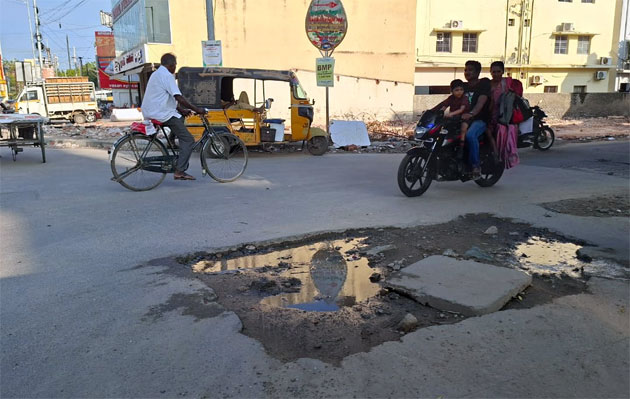 தூத்துக்குடி விஇ ரோட்டில், சுகம் ஹோட்டல் அருகே கடந்த சில மாதங்களுக்கு முன்பு ஸ்மார்ட் சிட்டி திட்டத்தின் கீழ் அமைக்கப்பட்ட கான்கிரீட் சாலையை உடைத்து குடிநீர் பைப் லைன் சரிபார்க்கப்பட்டது. அதன் பின்னர் சாலையை சீரமைக்காமல் அப்படியே போட்டு விட்டனர்.