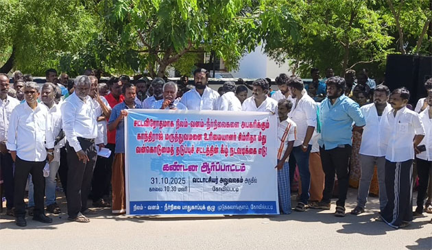 நீர்நிலைகள் பொது பாதையை சேதப்படுத்தியவர்கள் மீது நடவடிக்கை எடுக்க வலியுறுத்தி ஆர்ப்பாட்டம்!