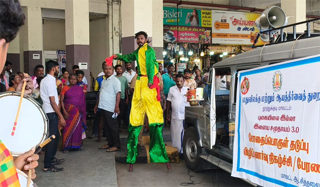 தூத்துக்குடி மாவட்ட மதுவிலக்கு மற்றும் ஆயத்த தீர்வைத் துறை சார்பில் போதை இல்லாத இளைய சமுதாயம் 3.0 திட்டத்தின் கீழ் பழைய பேருந்து நிலையம் வளாகம், புதிய பேருந்து நிலையம், தாளமுத்து நகர் திரேஸ்புரம் மீன்பிடி துறைமுக வளாகம் போன்ற இடங்களில் போதைப்பொருள் தடுப்பு விழிப்புணர்வு கலைநிகழ்ச்சிகள் நடத்தப்பட்டது.